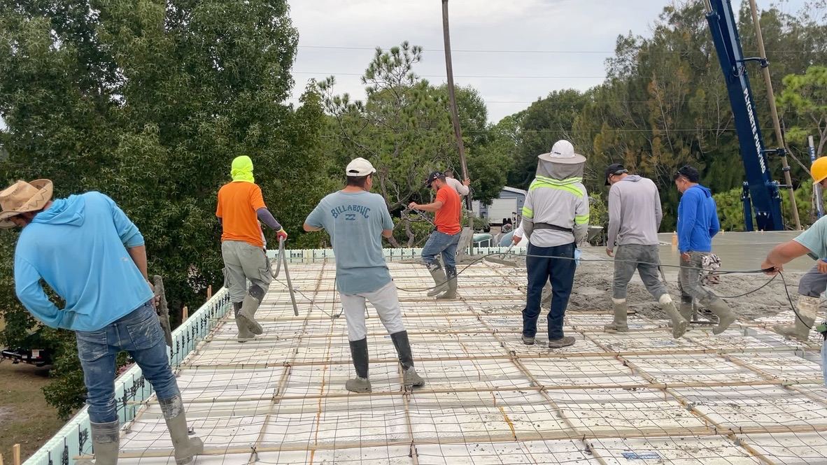 Reinforced monolithic concrete structure with integrally attached concrete roof can withstand hurricane CAT-5 and winds of 250 Mph.